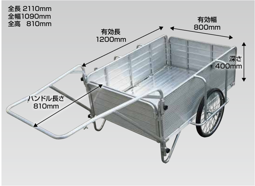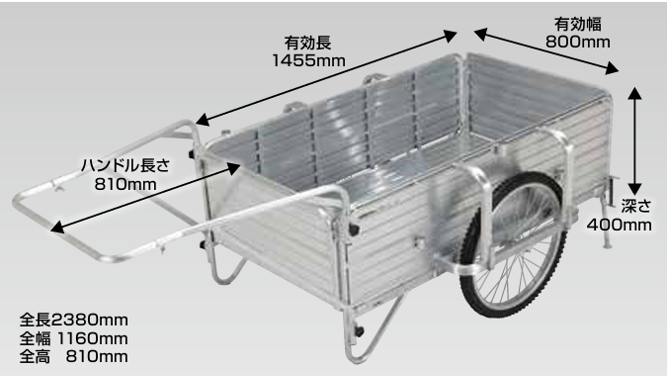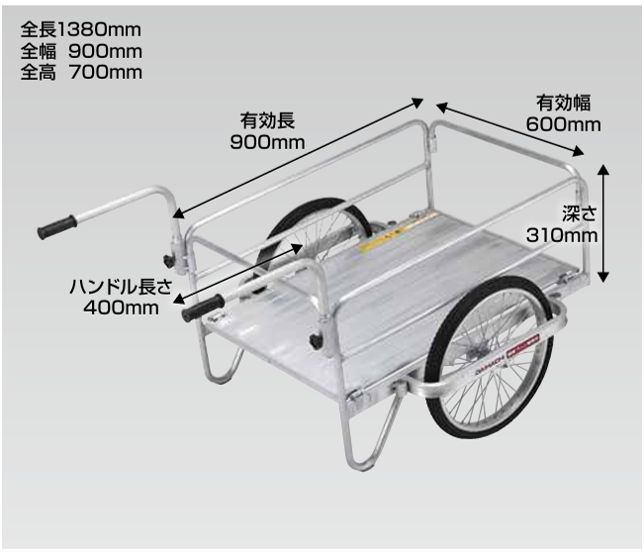 スチール製の重い、場所をとるを解決したアルミ製リヤカー。