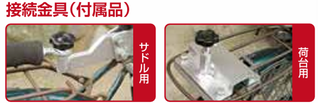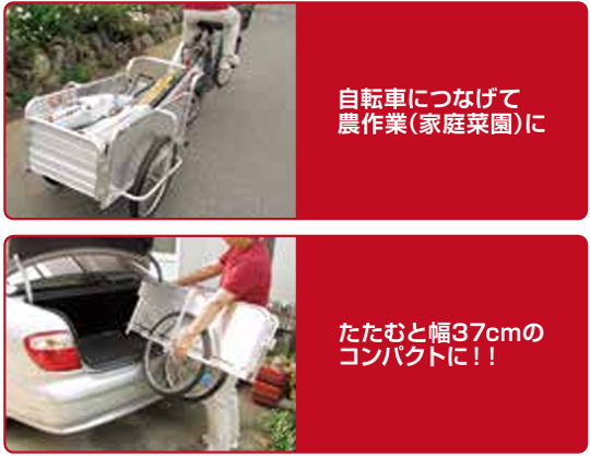 ●自転車に接続すれば重くてかさばるものを離れた場所にらくらく運べます。